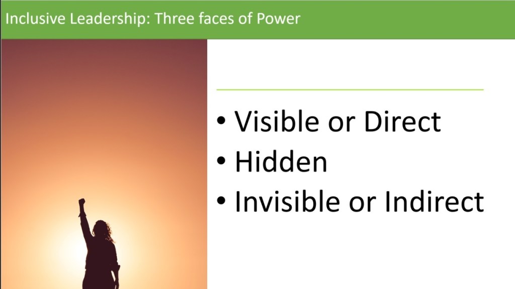 It means being intentional about inclusivity. And aware of the intersectional lense team members bring to their experience of having or not having access to the more hidden or invisible aspects of power.